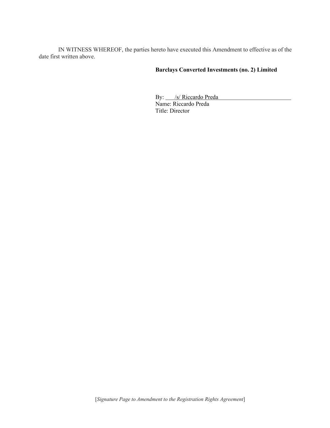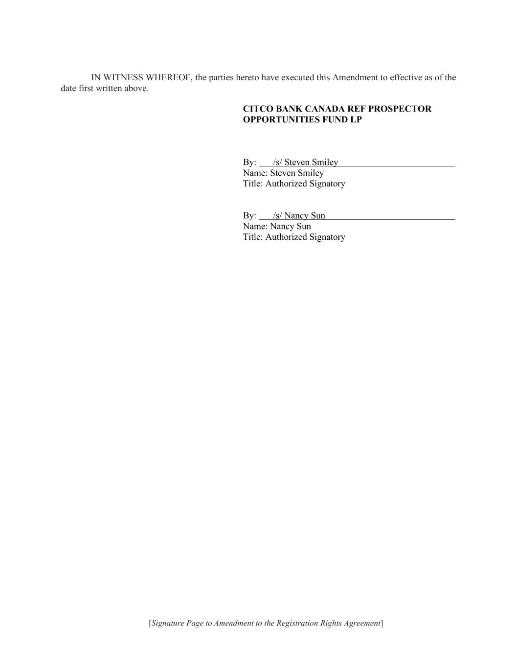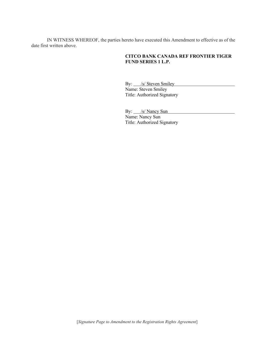 | | | Brendan Shanahan Chief Financial Officer (Principal Financial and Accounting Officer) |