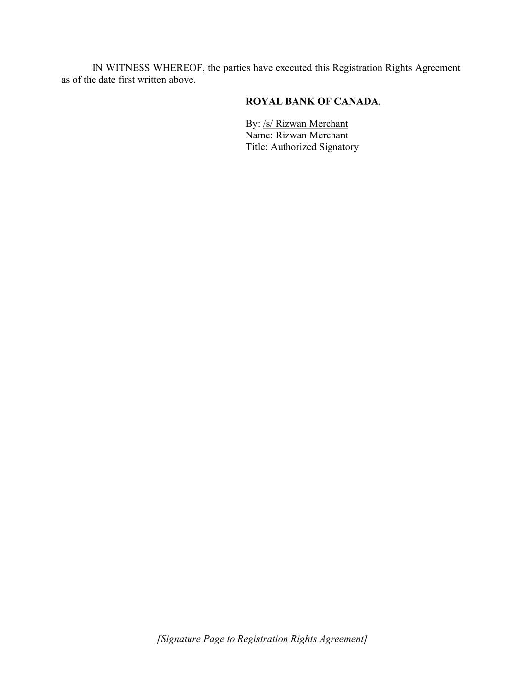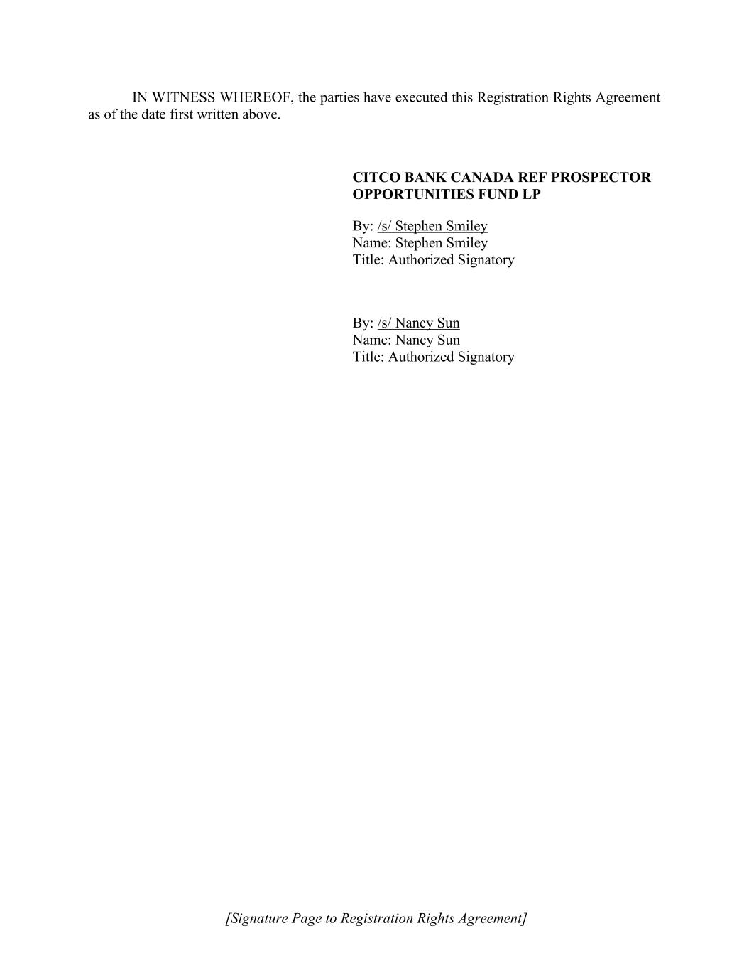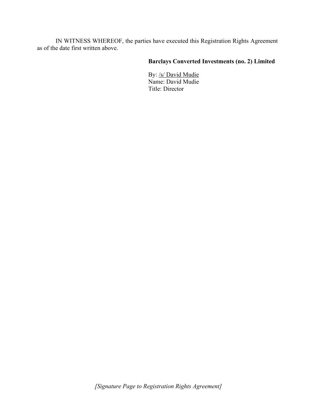 | | | Brendan Shanahan Chief Financial Officer (Principal Financial and Accounting Officer) |