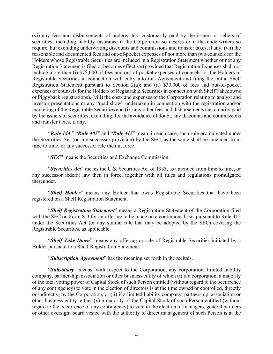 •“Centerbridge” refers to certain investment funds and other entities affiliated with CCP III Cayman GP Ltd., a Cayman Islands exempted company over which CCP III Cayman GP Ltd. has voting control (including any such fund or entity formed to hold shares of Class A common stock for the Blocker Shareholders).